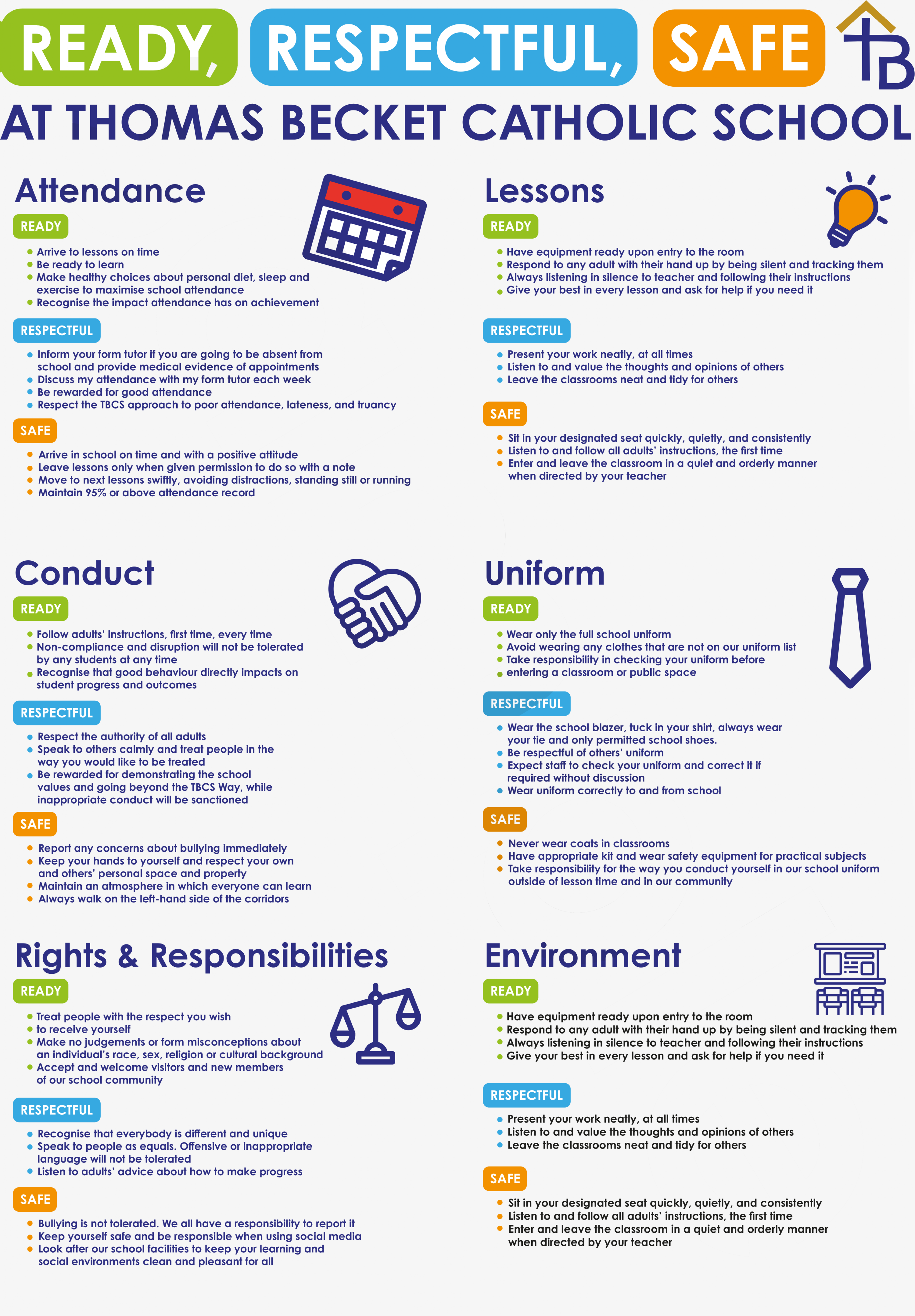 To ensure there are clear and consistent high expectations we have 3 clear school rules “Ready, Respectful and Safe