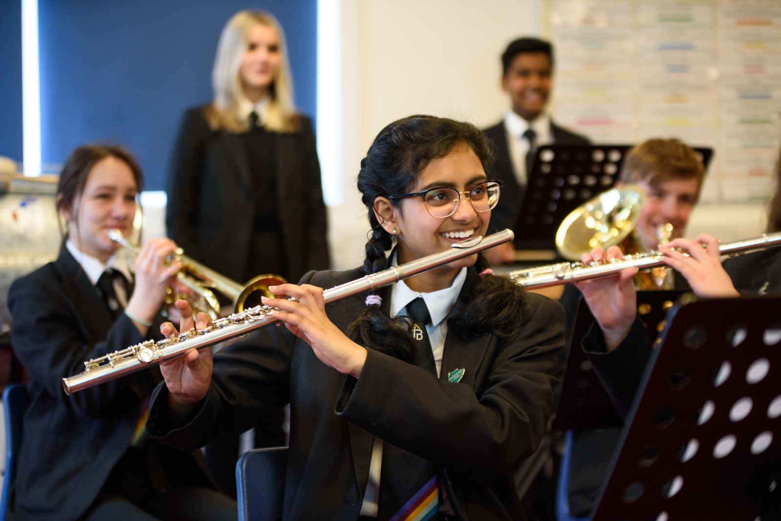 'Make Music for All' offers students across all year groups the opportunity to learn a musical instrument with significantly subsidised lessons (cost to student = £3 per lesson), which for brass/woodwind/strings also includes the free loan of an instrument.