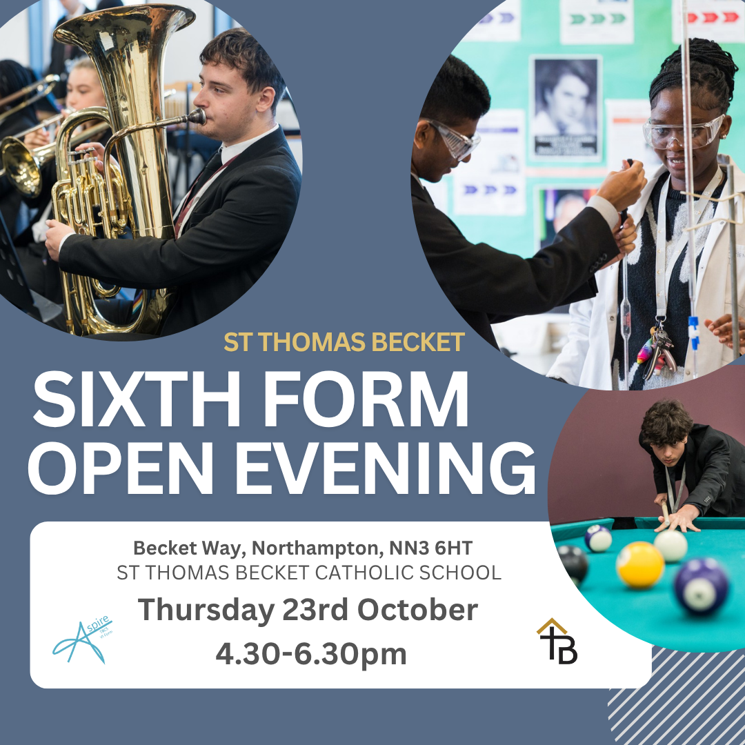 Please book a place at our upcoming Open Evening: Sixth Form Open Evening 2025 Tickets, St Thomas Becket Catholic Secondary School, Northampton | TryBooking United Kingdom